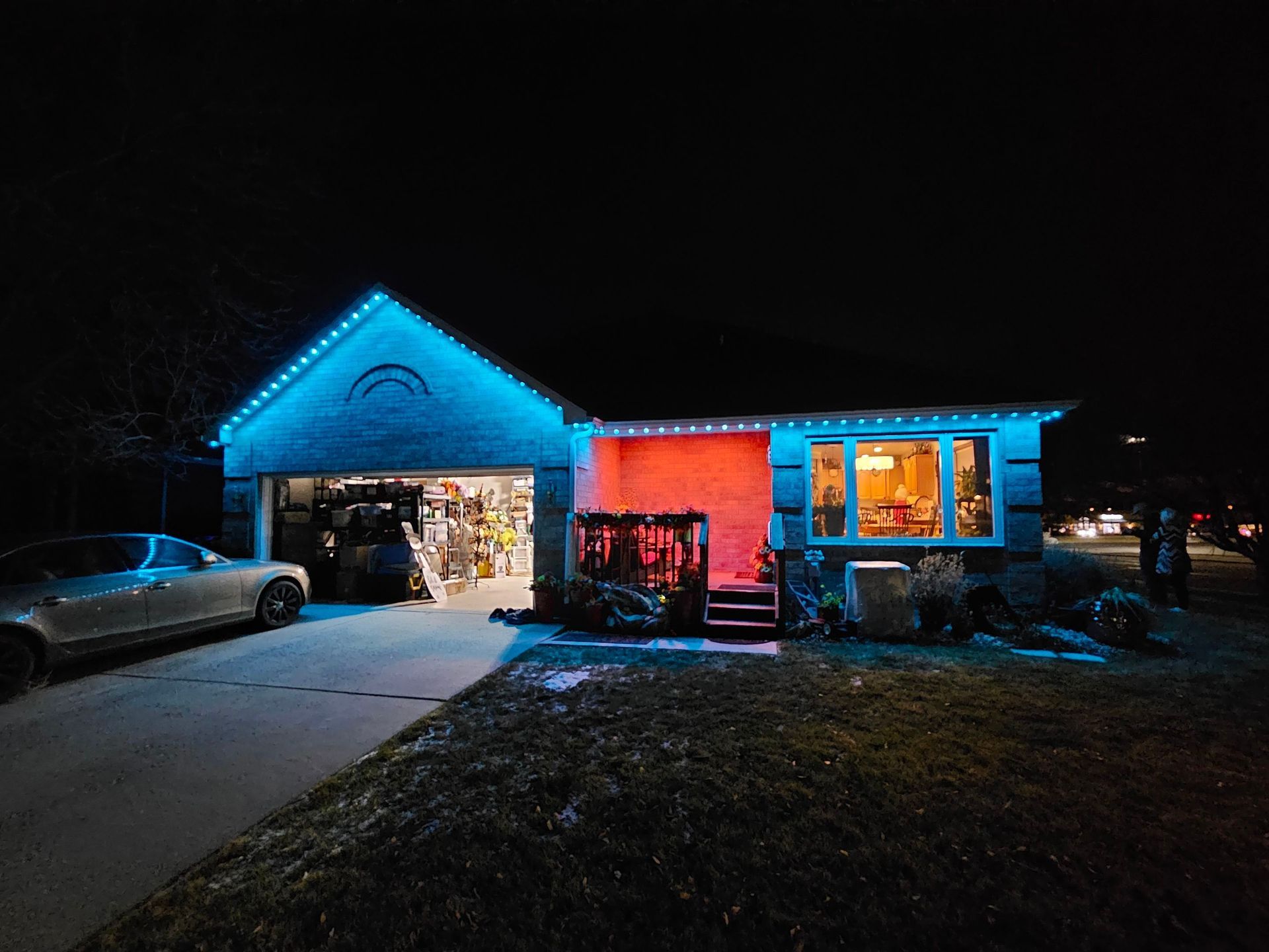 Among many of the benefits of having JellyFish Lighting, is the fact that you or your loved ones never have to worry about hanging or taking down lights ever again! The lights are installed permanently to the exterior of the home or business and are color selectable from an app on your phone!